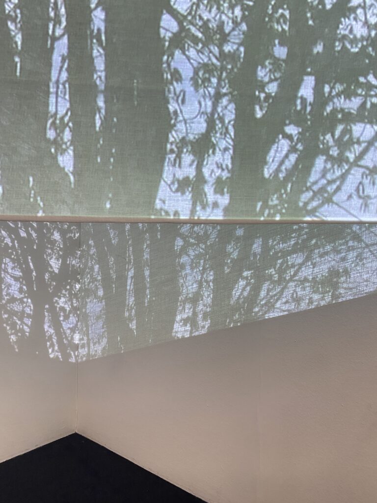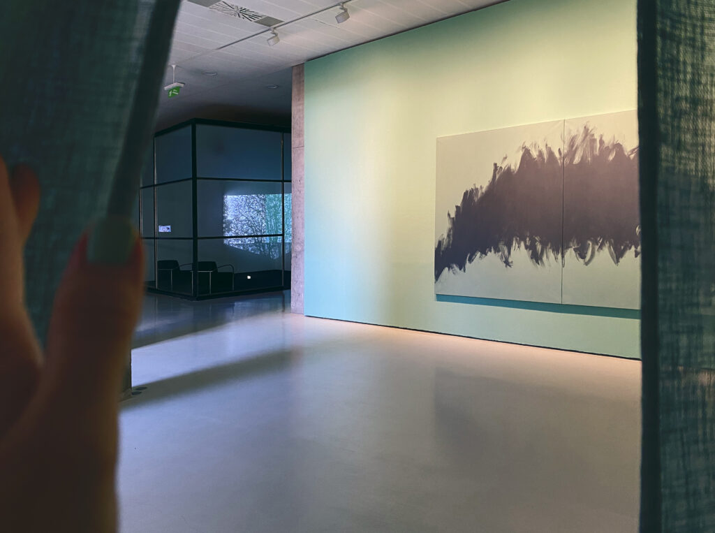 Su desarrollo formal en el CAB de Burgos no es tanto una respuesta pictórica como la formulación allende de la cuestión de los límites, por eso, las situaciones que sucedan en dicho espacio serán diversas, entre espacios comunes e imágenes universales. Algo de encuentro en la naturaleza esa presencia de los sonidos de las olas del mar, lluvia, viento o nieve, como escenas mínimas y secretas que se vinculan a los colores que la artista establece, tal si se tratase del orden invisible de unos sueños recobrados y que, puesto que se hallan en el espacio acotado de la sala de exposiciones, podrían también entenderse como la experiencia del encuentro con un jardín sonoro, en un bosque acotado, un lugar distinto ejerciente de tiempos diferentes, en donde la experiencia de la naturaleza ha ocupado el espacio. Para que nazcan los relatos, parece sentenciar Rivas, es preciso estar a la escucha.»